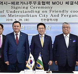 5월 28일, 페르가나주 슈흐라트 가니예브 주지사가 인천시청을 방문하여 박남춘 시장과 양도시 활발한 교류를 통한 발전을 위해 우호협력 MOU를 체결하였다. 페르가나주는 우즈베키스탄…